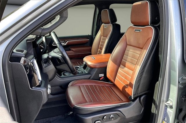 RECALL NOTICE: Some vehicles available for sale may have unrepaired safety recalls issued by the manufacturer. To check the recall status of any vehicle, please visit www.nhtsa.gov/recalls. PREMIUM AUDIO, PREMIUM WHEELS, SECURITY SYSTEM, Sierra 2500HD Denali Ultimate, 4D Crew Cab, Duramax 6.6L V8 Turbodiesel, 10-Speed Automatic, 4WD, Sterling Metallic, Alpine Umber Leather, 12 Speakers, 120-Volt Bed Mounted Power Outlet, 120-Volt Instrument Panel Power Outlet, 16-Way Power Driver Seat Adjuster w/Lumbar, 16-Way Power Passenger Seat Adjuster w/Lumbar, 2 Charge-Only Rear USB Ports, 2 Charge/Data USB Ports Inside Center Console, 2 USB Ports, 2-Speed Active Transfer Case, 3.42 Axle Ratio, 4-Wheel Disc Brakes, ABS brakes, Air Conditioning, Alloy wheels, AM/FM radio: SiriusXM with 360L, Apple CarPlay/Android Auto, Auto High-beam Headlights, Auto-dimming door mirrors, Auto-dimming Rear-View mirror, Automatic Emergency Braking, Automatic temperature control, Bed View Camera w/2 Trailer Camera Provisions, Block heater, Bose Premium Series 12-Speaker System, Brake assist, Buckle to Drive, Bumpers: body-color, Compass, Deep-Tinted Glass, Delay-off headlights, Driver door bin, Driver Memory, Driver vanity mirror, Dual front impact airbags, Dual front side impact airbags, Electric Rear-Window Defogger, Electronic Stability Control, Emergency communication system: OnStar, Floor-Mounted Center Console, Following Distance Indicator, Forward Collision Alert, Front anti-roll bar, Front Bucket Seats, Front Center Armrest, Front dual zone A/C, Front fog lights, Front License Plate Kit, Front Pedestrian Braking, Front Rain-Sensing Wipers, Front reading lights, Front wheel independent suspension, Full Grain Leather Seat Trim, Fully automatic headlights, Garage door transmitter, Genuine wood dashboard insert, Genuine wood door panel insert, Gooseneck/5th Wheel Prep Package, HD Surround Vision, Heads-Up Display, Heated 2nd Row Outboard Seats, Heated door mirrors, Heated Driver & Front Outboard Passenger Seats, Heated front seats, Heated rear seats, Heated steering wheel, Hill Descent Control, Hitch Guidance w/Hitch View, Hitch Package (LPO), Illuminated entry, In-Vehicle Trailering System App, Inside Rearview Auto-Dimming Rear Camera Mirror, IntelliBeam Automatic High Beam On/Off, Keyless Open & Start, Lane Departure Warning System, Leather steering wheel, LED Cargo Area Lighting, LED Smoked Amber Roof Marker Lamps, Low tire pressure warning, Manual Tilt-Wheel/Telescoping Steering Column, Memory seat, Multicolor 15 Diagonal Head-Up Display, Occupant sensing airbag, Off-Road Suspension, OnStar Services Capable, Outside temperature display, Overhead airbag, Overhead console, Panic alarm, Passenger door bin, Passenger vanity mirror, Pickup Box, Power door mirrors, Power driver seat, Power Front Passenger Windows w/Express Up/Down, Power moonroof, Power passenger seat, Power Sliding Rear Window w/Defogger, Power steering, Power Sunroof, Power windows, Preferred Equipment Group 5SB, Push Button Start, Radio: AM/FM w/Premium GMC Infotainment System, Rain sensing wipers, Rear Cross Traffic Alert, Rear reading lights, Rear seat center armrest, Rear step bumper, Rear Wheelhouse Liners, Rear window defroster, Remote keyless entry, Remote Vehicle Starter System, Safety Alert Seat, Security system, Signature Denali Ultimate Grille in Vadar Chrome, SiriusXM w/360L Trial Subscription, Speed control, Speed-sensing steering, Split folding rear seat, Spray-On Pickup Bedliner w/GMC Logo, Steering Wheel Audio Controls, Steering wheel mounted audio controls, Tachometer, Technology Package, Telescoping steering wheel, Tilt steering wheel, Traction control, Trailer Cam Provisions & Trailer Viewing Software, Trailer Side Blind Zone Alert, Trailer Tire Pressure Monitor Sensors, Trip computer, Turn signal indicator mirrors, Ultrasonic Front & Rear Park Assist, Unauthorized Entry Theft-Deterrent System, Universal Home Remote, V